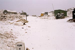 I rested for 10 minutes and started for Bum-la which was just 2 Kms away. After a few more turns, which were not a problem, the track opened up on a plateau, a flat table top. Snow cover was 2-3 feet here, but luckily Army had cleared snow from the track. The wind speed here was atleast 50 kph, if not more. No more inclines came for the next one and half kilometer, instead a swanky Army structure appeared on the right hand side.