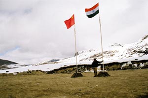 Bum-la Hut itself was a surprise, but it was nothing compared to what I saw next. I walked down on the track from Bum-la hut again to get over the "cold feeling" and 100 meters into the walk I saw a sight which I thought was a symptom of Acute Mountain Sickness. Alright that's adding drama, but during my travel years, I haven't been to a place where flags of two countries are placed 10 feet from one another and the small strip of land in between is "No Man's Land". I was as close to China one can get on the Indo-China Border. Usually "No man's Land" is more than a kilometer wide on International Border, but with China still claiming 90,000 sq Kms of India it occupied for two months in 1962, technically speaking, I was at the Actual Line of Control on a disputed territory.
