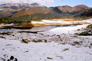 The lake near the camp has huge boulders on its right bank, if an Image of the area under snow cover is shown to anybody, immediate reaction would be "I want to live at a place like this".
