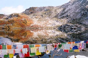 The road ascends further from P.T. Tso through lovely hair pin bends to Nagu - la a pass at an altitude of 13,568 feet, and three kilometers from P.T. Tso. One km further from Nagu la is Grdptsang Tso, another lake with rich history and myth attached to it. Guru Padmasambhava, an Indian saint who "re-introduced" Buddhism in India, especially in the Himalayan states was praying in a cave adjoining Grdptsang Tso. The myth goes that a twelve-headed serpent lived in what was Grdptsang Tso. Guru Padmasambhava, to mediate in peace, fed the serpent with so much food that he exploded. Grdptsang Tso is considered a holy lake by the locals and while visiting the holy lake they don't shout, utter bad words or dirty the place because, according to their belief, if they do so, the weather changes drastically and is accompanied by rain and snowfall. Some locals also visit the lake to see their future, usually accompanied by a lama, who first performs a holy ritual and after certain offerings are given to the lake, one can see his future in the water's reflection. There is also a meditation hut and a Gurudwara near the lake.