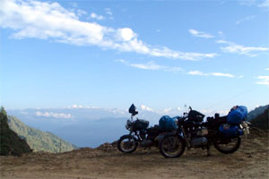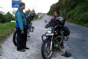 We reached Guwahati late in the evening and managed to find our way in the city through the maddening traffic and dust. Praveen was keen to stay put in Hotel Tibet where 60kphers had stayed in the past. Me and Pady stayed near the railway station while Praveen went in search of Tibet. Finally we didn’t stay in Hotel Tibet but managed to find decent rooms in Hotel Kings court. The next day was consumed in running around for Inner Line Permits for me since Praveen and Pady had already got permits from Delhi for the state of Arunachal Pradesh. Got my permit in the evening and by that time Praveen managed to find a place to park Pady’s bike. Mr. Lashkar, who owns the Enfield showroom in Guwahati, was quite accommodative and here we also got our bikes checked for the long journey ahead.