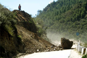 Since my destination was Thimpu and since i had been clearly told that there is no accommodation in between, I rode on, keeping in mind that I was riding in regions where by 1700 Hrs it becomes dark. And, one rule I had learnt from previous experience was: AVOID RIDING IN THE DARK. Now, about 2-3 kms from Dantak canteen, something was bound to happen. Just when I take a sharp curve downhill, there in the middle of the highway is a huge bike with LOTS of luggage and two riders clicking photographs to glory. I come closer and I see a Bullet with a Delhi registration. I was aware that Praveen Rao and Pady, fellow 60kphers were somewhere in the region. I had checked my mail in Phuntsholing and knew that the two of them were traveling from Delhi to Nepal, probably Bhutan, and then to Assam. With this prior info, I rode up to the rider and stopped my bike. A very very suspicious rider looked at me. And in middle of nowhere in Bhutan, I asked him if he was Praveen Rao.