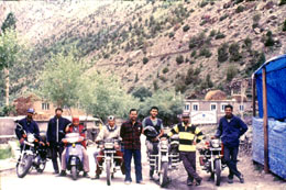 For those who don't know, Rajasthan in June is like a giant frying pan - heat waves searing upwards from the roads make everything around shimmer. They passed through Rajasthan and reached Delhi in two days. From there on, they took the four-lane expressway to Chandigarh and the Kinetic Honda was screaming along to keep apace with the faster Bullets. The scooter managed to reach Swarghat without falling apart and attacked the ghats to Manali with gusto. The handling was questionable, but the rider managed to stay in control at all times and reached Manali safe and sound.