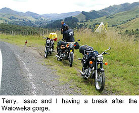 He had placed a call and the cavalry was on the way. Not being in a position to add much in the way of help we headed off...only to meet up with Terry at Opotiki. Apparently it had turned out only to be a loose pushrod adjuster. After reseating and readjusting it he was good to go so the three of us decided to convoy the rest of the way to Gisborne.