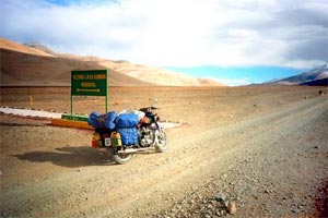 Then the region again became desolate and except Wild Assess, called ‘Khiangs’ we couldn’t spot anyone else. Running ‘Khiangs’ are a sight to behold. They graze and move in groups. They run with horse-speed and take frequent turns. They are very similar to the ones found in Rann of Kutch in physical structure and ventral stripe on the body but the color differs. ‘Khiangs’ are brown in colour while the wild assess found in the Rann are somewhat grayish. Overall, we spent almost 10 minutes watching their activities. They looked gorgeous. After riding for about 5 kms a small barrier came. The soldier posted there checked our permits and let us go further. From this post, the left track goes to a border post at a beautiful lake, Spanggur Tso (ST). ST is still not open to tourists and its permit is hard to get for a civilian. This lake is situated on a gap called Spanggur gap in the north-eastern mountains of Chushul. Chinese are very border conscious and recently I read that they have built a strong road from Rudok in Tibet right upto the gap which is worthy of even carrying Tanks. We stayed on the right track. I got little scared of loneliness for there wasn’t anybody, not even birds, to have a company. Just we and the bike roaring hard to keep pace with the altitude and what it had to lug further.