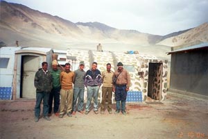 Having a sumptuous breakfast, we bade goodbye to the Palgais family and crossed the Rhongo Bridge over the frozen Hanle River and called for Mr. Latho Singh to bid him goodbye. He was warming up in his tent. Shivering with cold he came out to get us inside. Our plea of getting late didn’t work. We had biscuits and Manish had tea. Then off we were for Loma. Loma is only 15 minutes away from Rhongo but on the way we saw what we missed the previous day while coming. We took a five minute break. Absolute silence, broken only by the gushy winds, snow all over the flanking mountains, a wide valley of sandy terrain and frozen Hanle was what we were listening to and ogling at. The moment we reached Loma, everybody congregated inside the bunker. We again had to had milk and biscuits. Drinking hot milk was absolute bliss for me as cold was unrelenting. We chatted for around 30 minutes and then bade goodbye to Mr. Prem Singh and party with a promise that we will send or bring them some more memory bouquets.
