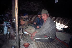We were greeted by Urgan, a man in his late thirties, his sweet wife and a small kid. They were ready for the dinner. Good timing. We were (damn) hungry. Urgan’s father, Mr. Tsewang Palgais, joined in and we chatted up for more than an hour. Our conversation revealed that Mr. Palgais is proud to be a changpa tribesman. He still resides in a Yak wool tent called ‘Rebo’. Modern influences on seemingly timeless changthang, however, are distracting them from their age-old traditional practices and now young men are seeking occupation outside Changthang. Mr. Latho Singh is a ‘Tanker’ and perhaps always thinks about ‘booze’ :~) Although, he always pleaded not guilty and instead used Gaurav or Urgan as bait for making him overdrink. We dropped Latho Singh ji to his tent fearing what happens if he can’t find his way to the tent. After that we couldn’t think of any late night discussion amongst the two of us as cold was unbearable by now and we were exhausted. Sleep, in fact, during the whole Ladakh trip never posed a problem. We could sleep at any time provided we wished to. At 7:30 am in the morning, I woke out of my slumbers to a continuous knock on the door. At such a lonely place, I thought it is better to check out first before opening the door. To our surprise, Mr. Palgais was at the door. He came to call us for the breakfast at his tent. Now ladies and gentlemen, please be ready for our surprise of the lifetime. We could never imagine what we actually had in our breakfast. “CHHOLEY BHATUREY”! Amazing, isn’t it? It was a treat in Chang’thang. We discussed several things on their lifestyle and clicked few photographs. Notably, the Yak wool tent has spaces between its threads wide enough to let the sunlight penetrate inside. In fact, we could see outside and make out if it is human or livestock. Satiating our curiosity, Mr. Palgais told that the tent threads have hairs which don’t allow the snow to penetrate inside. Had it been rain, it might seep in. Moreover, Yak hair is an effective water deterrent. Mr. Palgais has a big family. Two of his daughters have become Nun (Chomu). One daughter is married. Another of his son is working at Leh. Seeing life at Rhongo forced us to think of a situation when anyone of these tribesmen & women would need immediate medical attention. Although fast disappearing, Changpas have their own indigenous healing systems similar to Tibetan medicine for minor ailments and injuries. Mr. Palgais liked my tooth powder and Manish’s wrist watch, which we merrily gifted him ;;~)).
