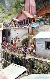 Bhagirathi. At the shrine, the river Bhagirathi is wider and