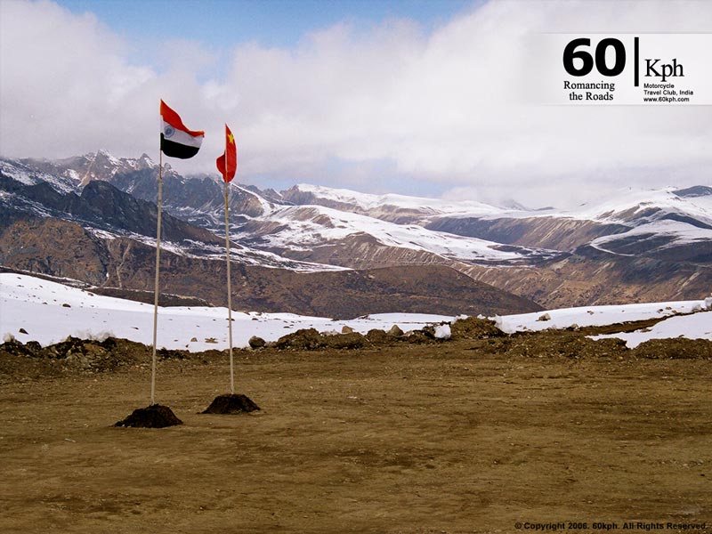 Bum-la at 15,000 feet stands on the Indo-China Line of Actual Control, No Man's land is just 10 feet wide as 90,000 sq Kms of North-east India is still a Disputed territory. 60kph rode the first two wheeler to Bum-la. |