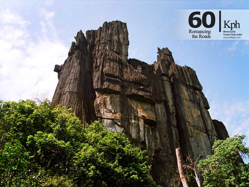 The gigantic rock formations of Yana stand proud and tall among the evergreen forests of the Western Ghats in Uttara Kannada district. The needle sharp peaks of these two monoliths jab the sky. The taller of the two rocks at 120 metres is the Bhairaveshwara Shikhara and slightly smaller one at 90 metres is called the Mohini Shikhara. |
